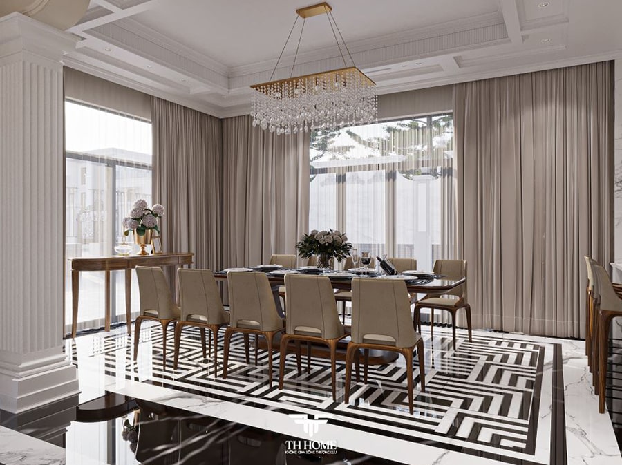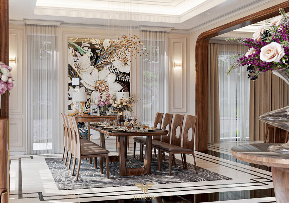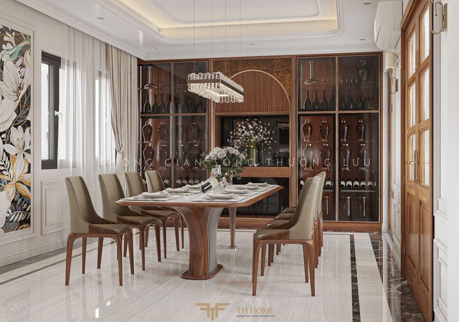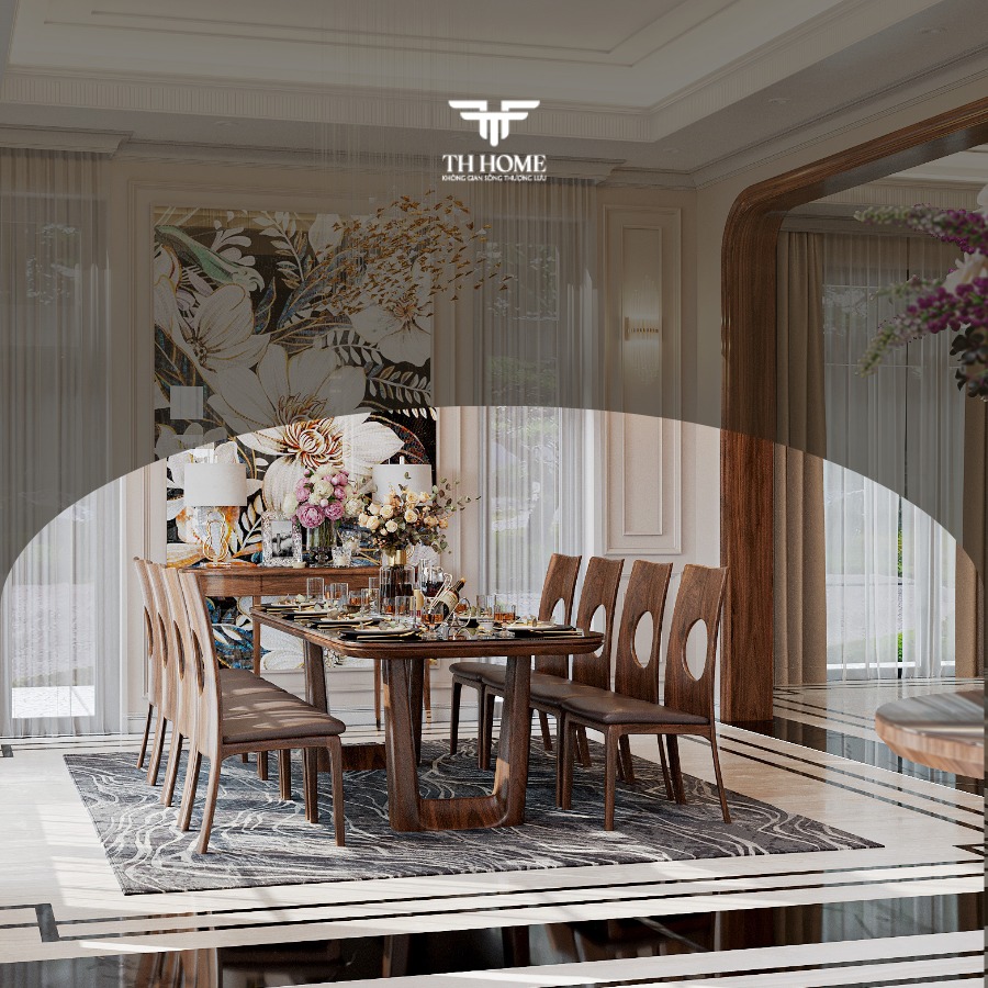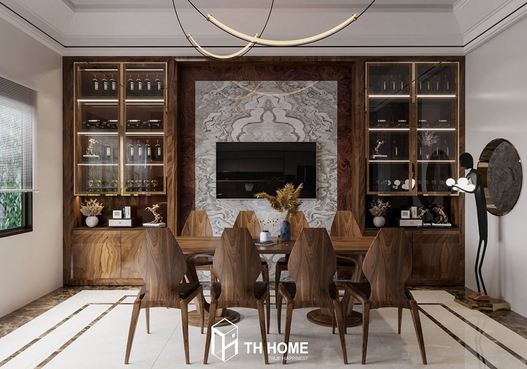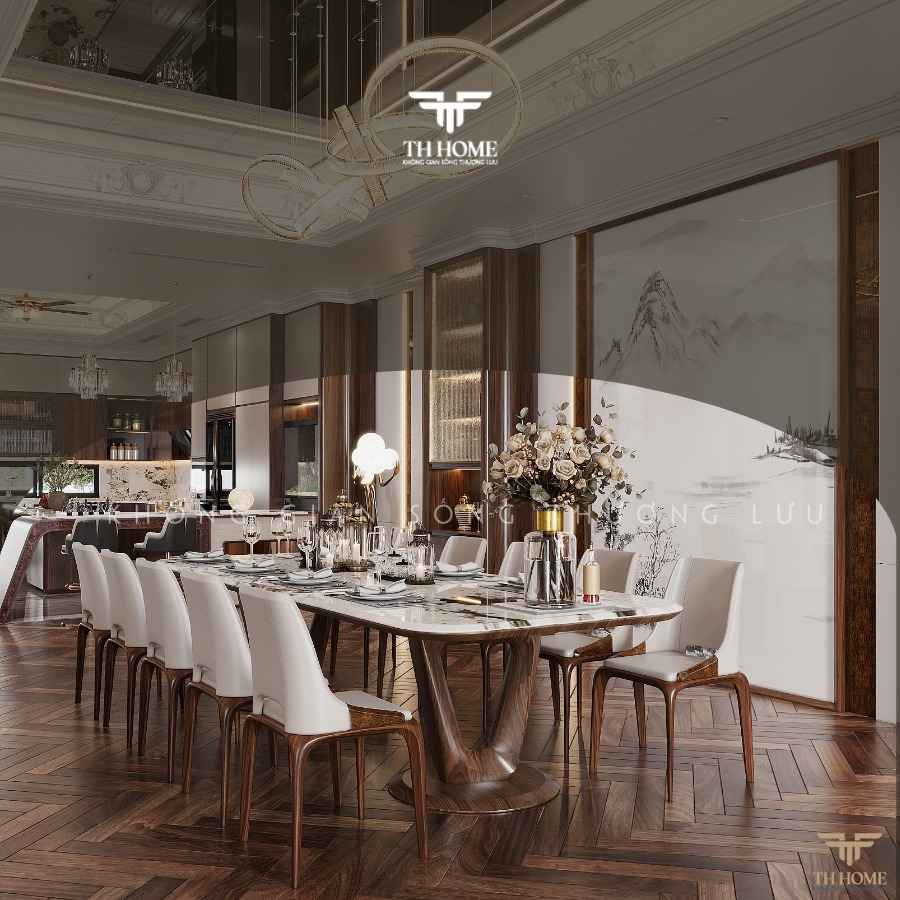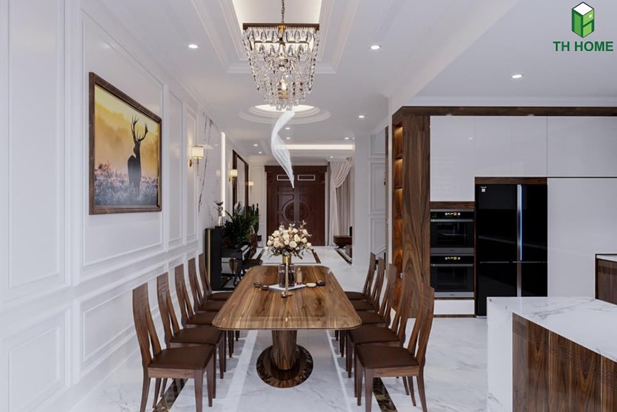 Không Gian Phòng Bếp Sang Trọng Với Bàn Ăn Gỗ Óc Chó