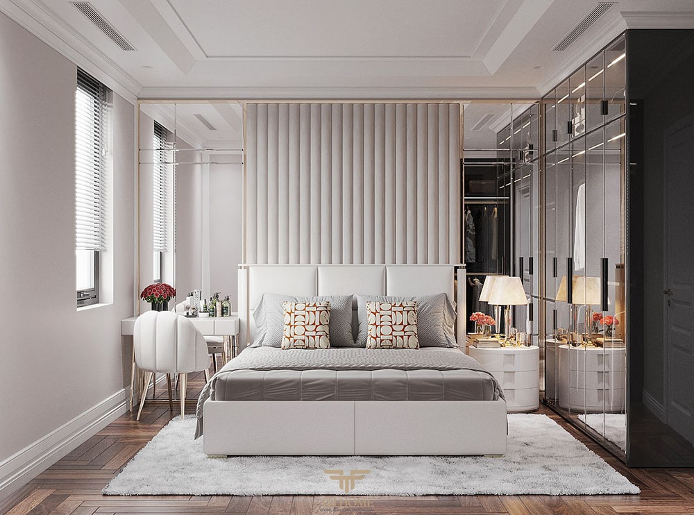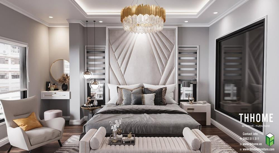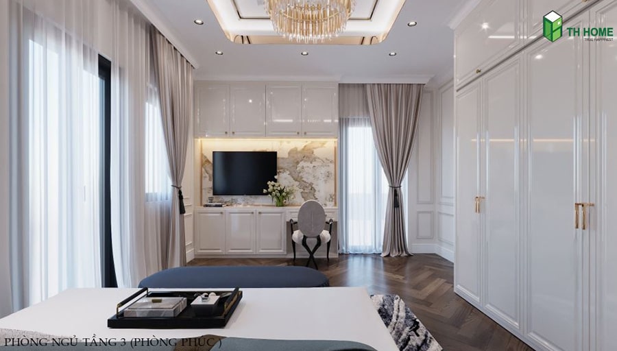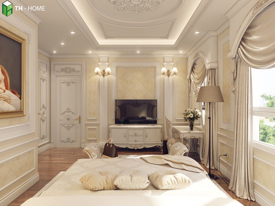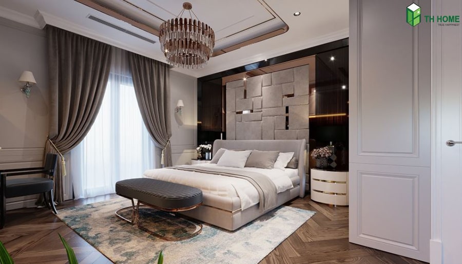 Mẫu Thiết Kế Nội Thất Phòng Ngủ Tân Cổ Điển Đẹp được TH Home Thực Hiện. Phòng ngủ là nơi để thư giãn, nghỉ ngơi và thể hiện lên gu thẩm mỹ đặc biệt, đẳng cấp của gia chủ.