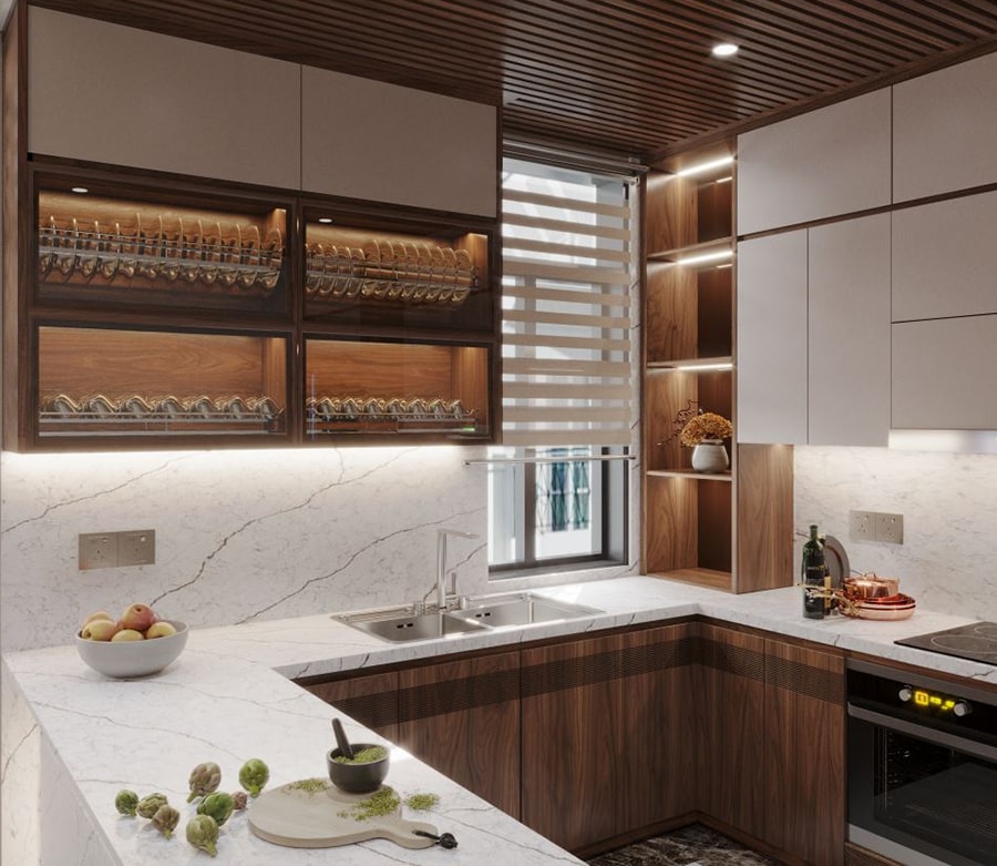 Tổng Hợp Mẫu Nội Thất Phòng Bếp Gỗ Óc Chó Đẹp